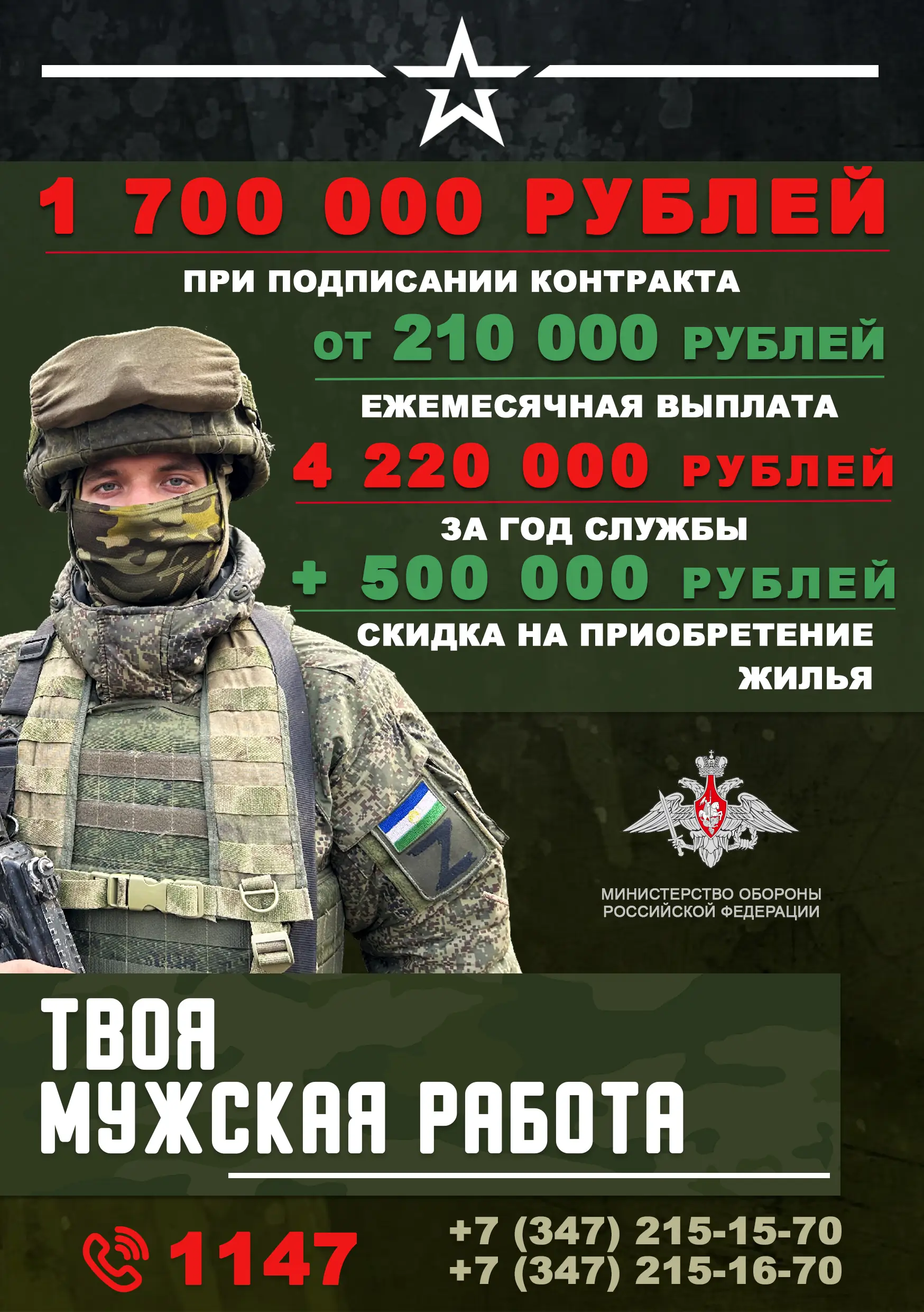Подписание контракта на военную службу — это ваш шанс внести вклад в безопасность страны, построить успешную карьеру и обеспечить комфортное будущее своей семье! Даже если вы проживаете в Удмуртии, заключение договора в Республике Башкортостан обеспечит вам значительно лучшие перспективы и условия для самореализации. Присоединяйтесь к элитному составу вооруженных сил России и создайте свое надежное будущее уже сегодня!