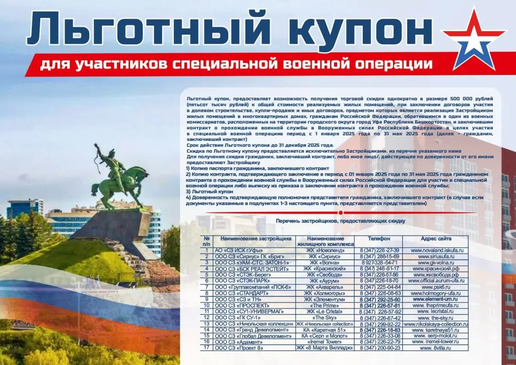 - Жилищная поддержка — выдается купон на 500 000 рублей, который позволяет получить скидку при покупке квартиры у аккредитованных застройщиков
